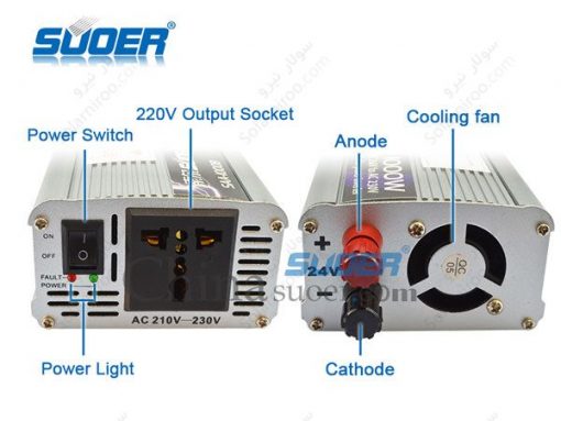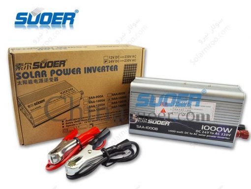 اینورتر تمام سینوسی 24 ولت 1000 وات سوئر, یک مبدل با کیفیت مناسب برای پکیج برق خورشیدی مستقل از شبکه و با خروجی تمام سینوسی است. از این اینورتر می توان در خودرو نیز استفاده نمود