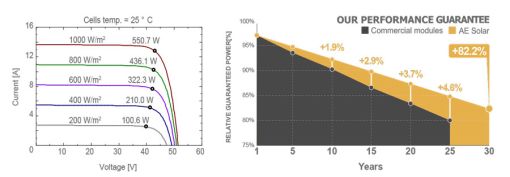 پنل خورشیدی 550 وات برند AE SOLAR سری AURORA از سلول های مونوکریستال تشکیل شده و جزو پنل های 144 سلولی با تکنولوژی Halfcell Perc است. این پنل همانند پنل های 72 سلولی است اما به دلیل استفاده از تکنولوژی Halfcell هر سلول به دو سلول نیمه تقسیم شده است و بنابر این تبدیل به یک پنل 144 سلولی می شود. نوع سلول ها در این پنل Gallium-doped Mono c-Si از نوع پرک است.