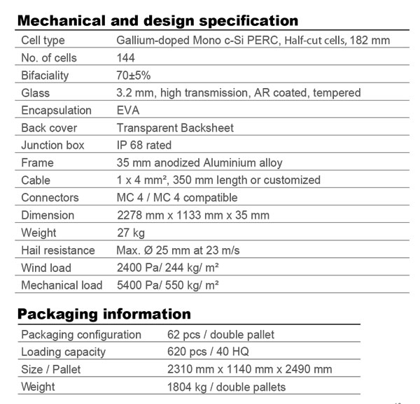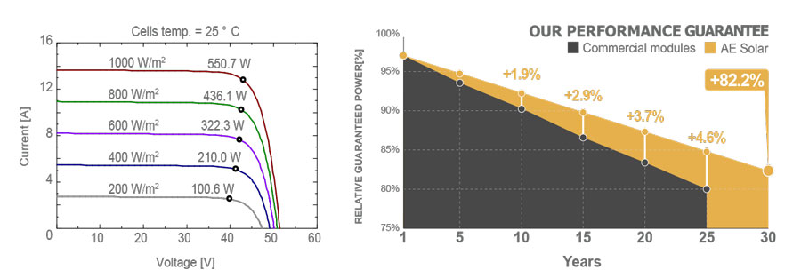 پنل خورشیدی 550 وات برند AE SOLAR سری AURORA از سلول های مونوکریستال تشکیل شده و جزو پنل های 144 سلولی با تکنولوژی Halfcell Perc است. این پنل همانند پنل های 72 سلولی است اما به دلیل استفاده از تکنولوژی Halfcell هر سلول به دو سلول نیمه تقسیم شده است و بنابر این تبدیل به یک پنل 144 سلولی می شود. نوع سلول ها در این پنل Gallium-doped Mono c-Si از نوع پرک است.